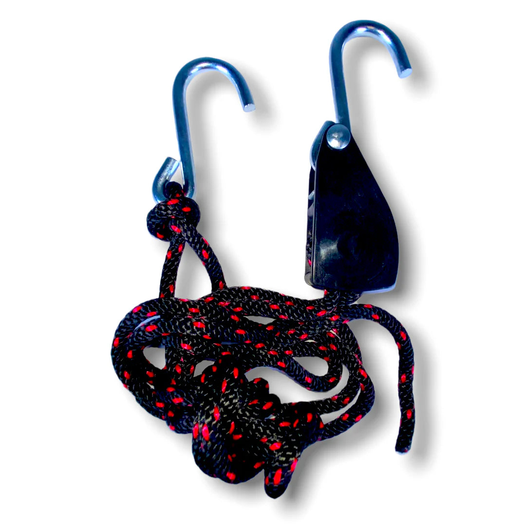 Ein 1/4"-Seilspanner – Maximale Belastungsgrenze: 68 kg. Inklusive 2,4 m fest geflochtenes Polypropylen-Seil.
